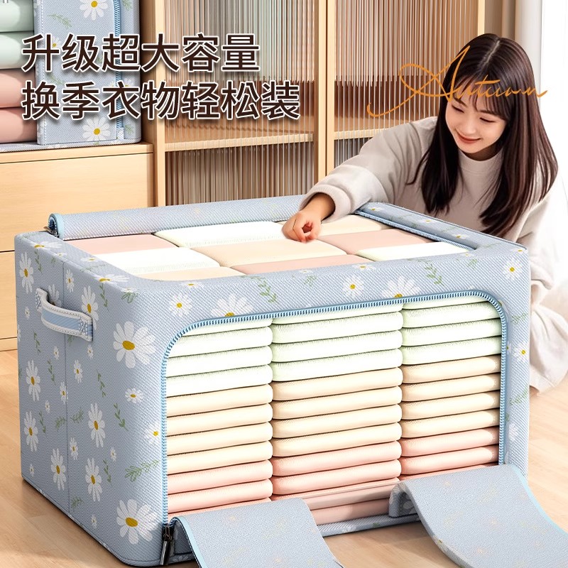 牛津布收纳箱特大号储物钢架箱打包装衣服棉被袋子折叠布艺整理箱