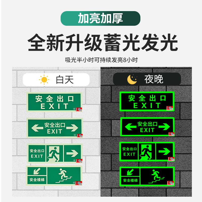 自发光安全出口指示灯牌夜光免接电墙贴消防应急出口疏散标识标牌
