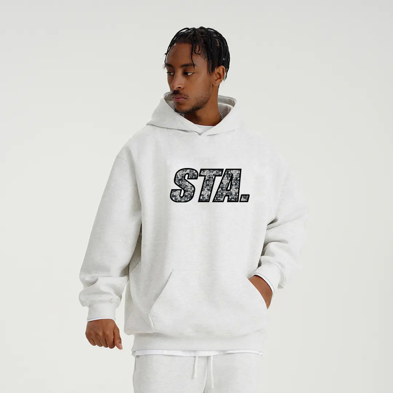 STA旗舰店基础小字母印花连帽卫衣男女美式潮牌重磅纯棉灰色外套