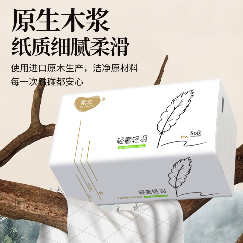 柔恣420张大尺寸纸巾5包加厚大包抽纸 L大号餐巾纸卫生纸面巾纸