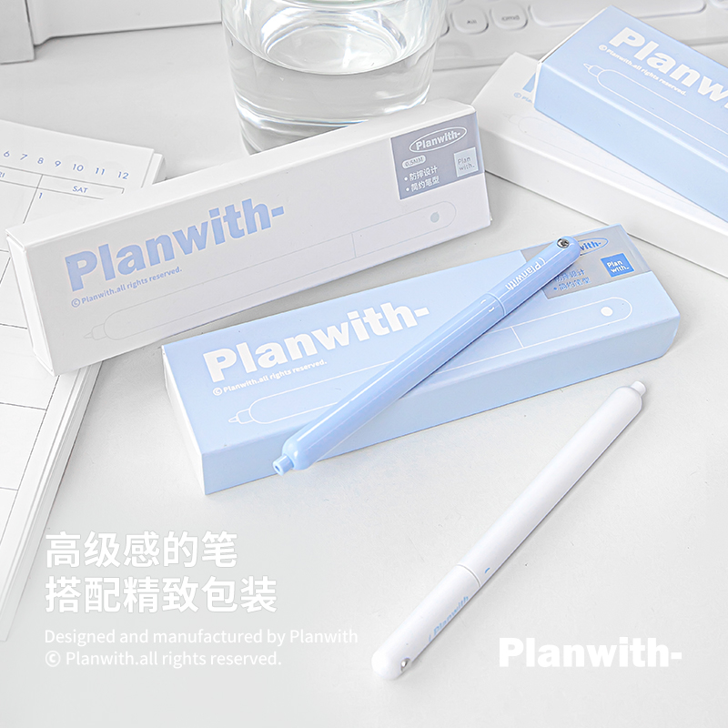 Planwith中性笔高颜值ins风学生用刷题笔旋转速干黑色水笔签字笔