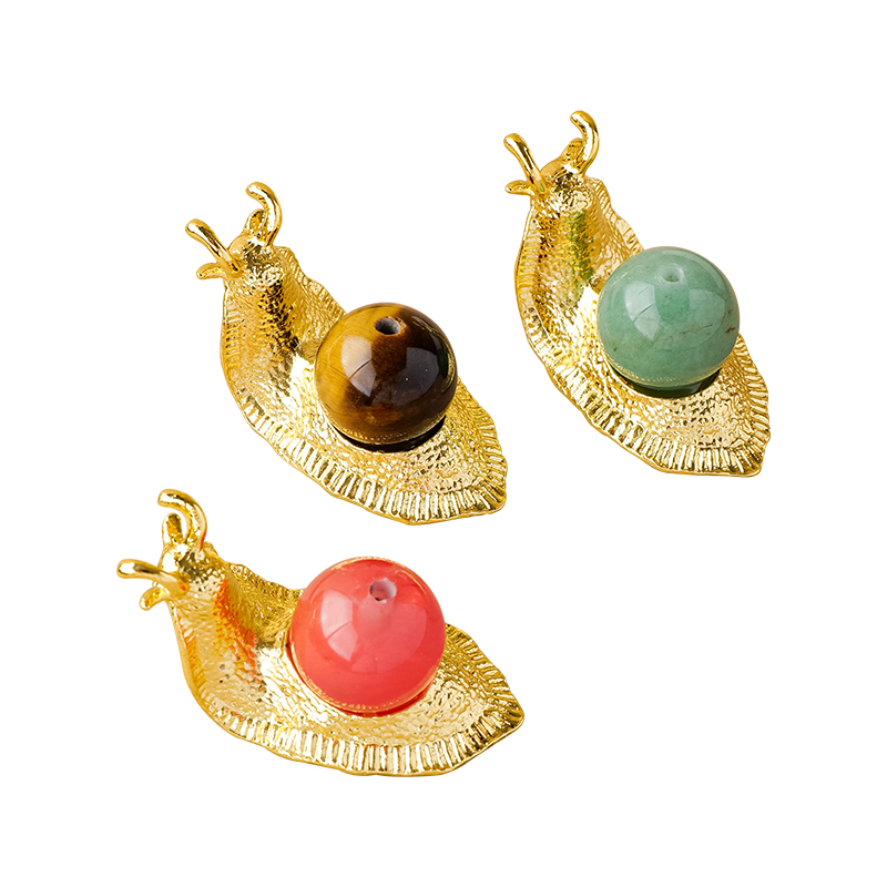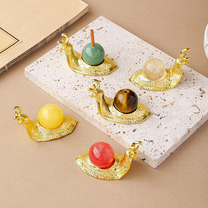 天然水晶球小蜗牛香插摆件粉水晶紫水晶圆球创意蜗牛动物摆件