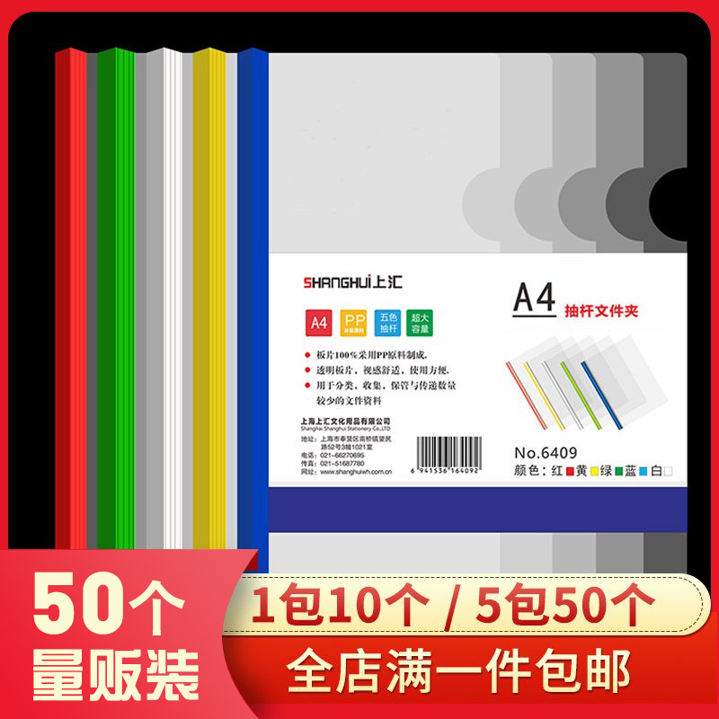 上汇A4抽杆文件50个装多层插页袋塑料资料档案简历试卷透明夹票据袋夹透明资料夹学生办公夹纸加厚报告拉杆夹