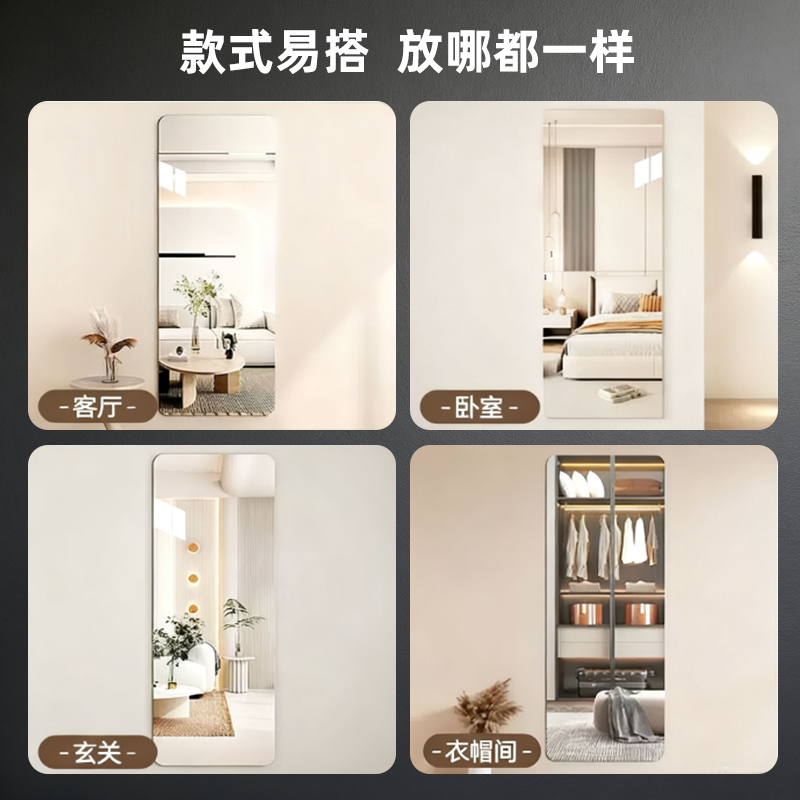 软镜子自粘式贴墙亚克力全身穿衣镜家用高清镜面贴纸试衣镜柜门