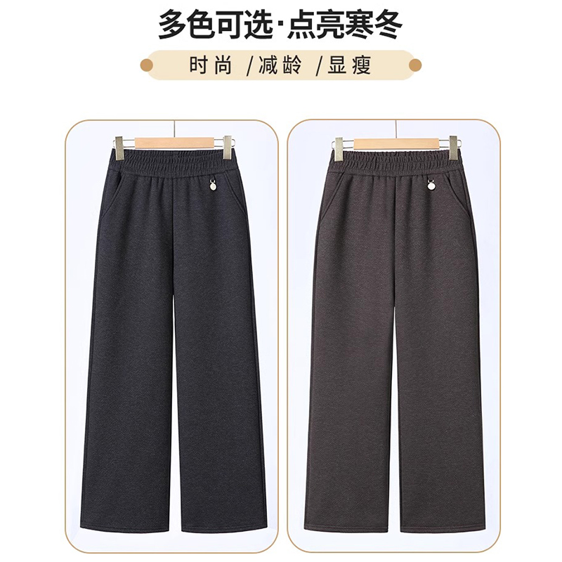 妈妈裤子春秋款毛呢休闲阔腿裤加绒秋冬中老年女裤奶奶春直筒长裤