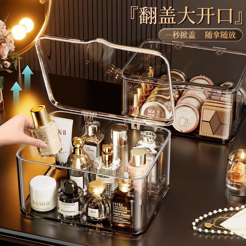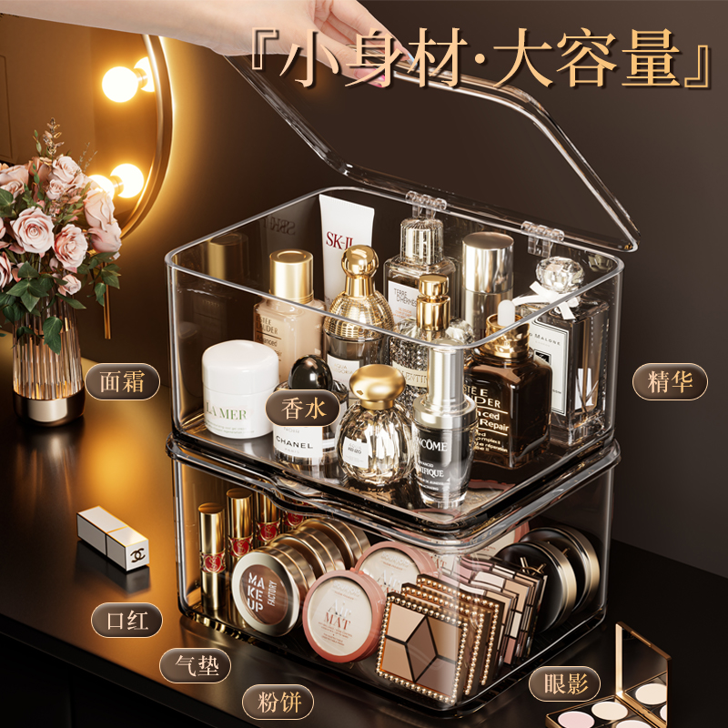 高级化妆品收纳盒梳妆台护肤品置物架亚克力整理盒桌面防尘化妆箱