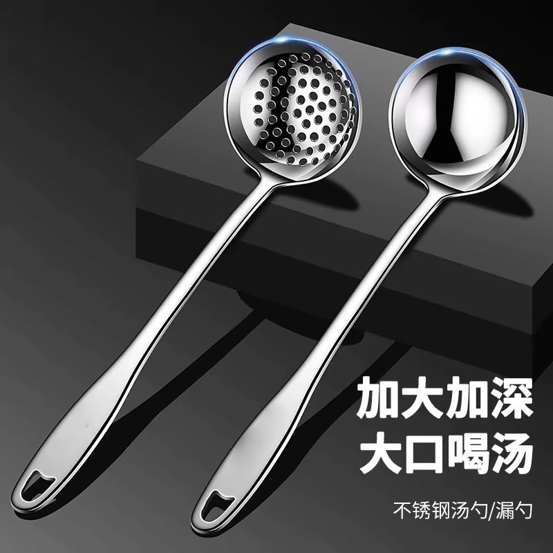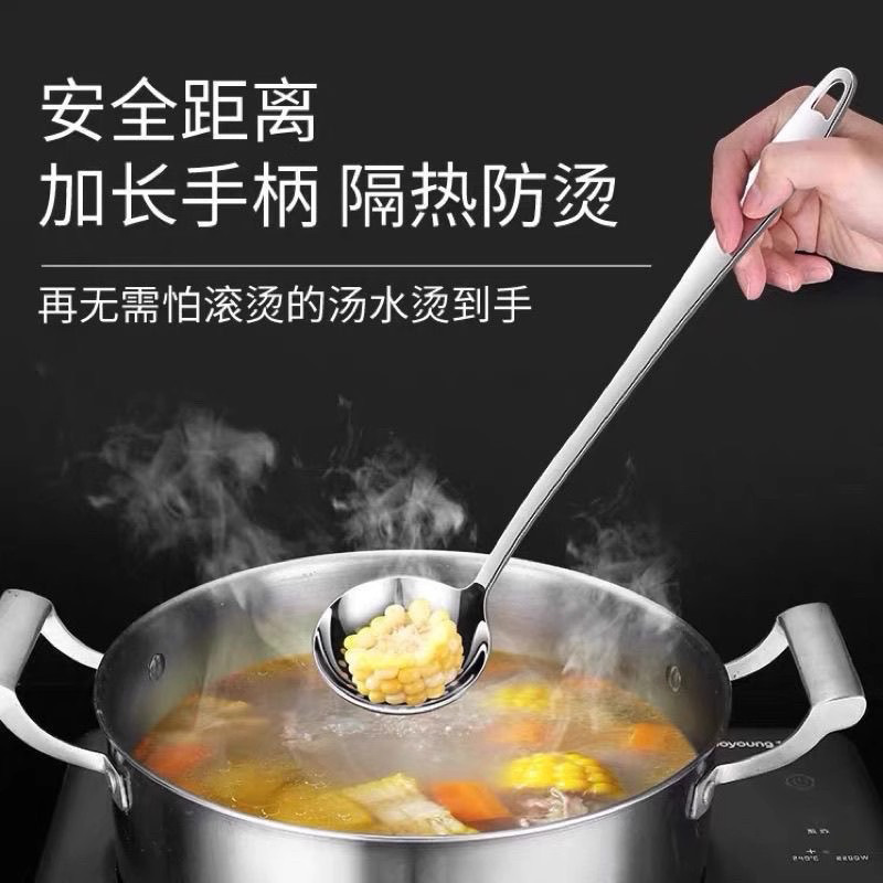 汤勺不锈钢食品级家用盛汤勺长柄加深火锅厨房专用大号漏勺隔油勺