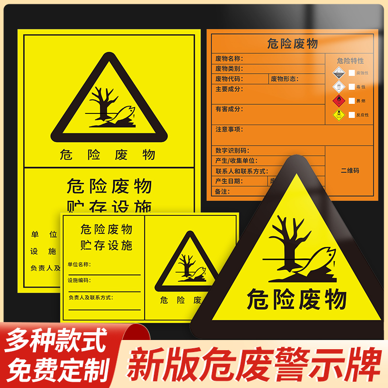 危险废物标识牌危废库标识贴危废间标示牌全套危废仓库安全警示牌子三角形铝板一般固体废弃物标志提示牌标签