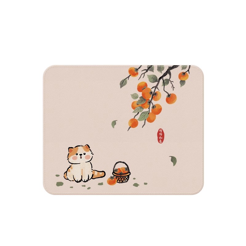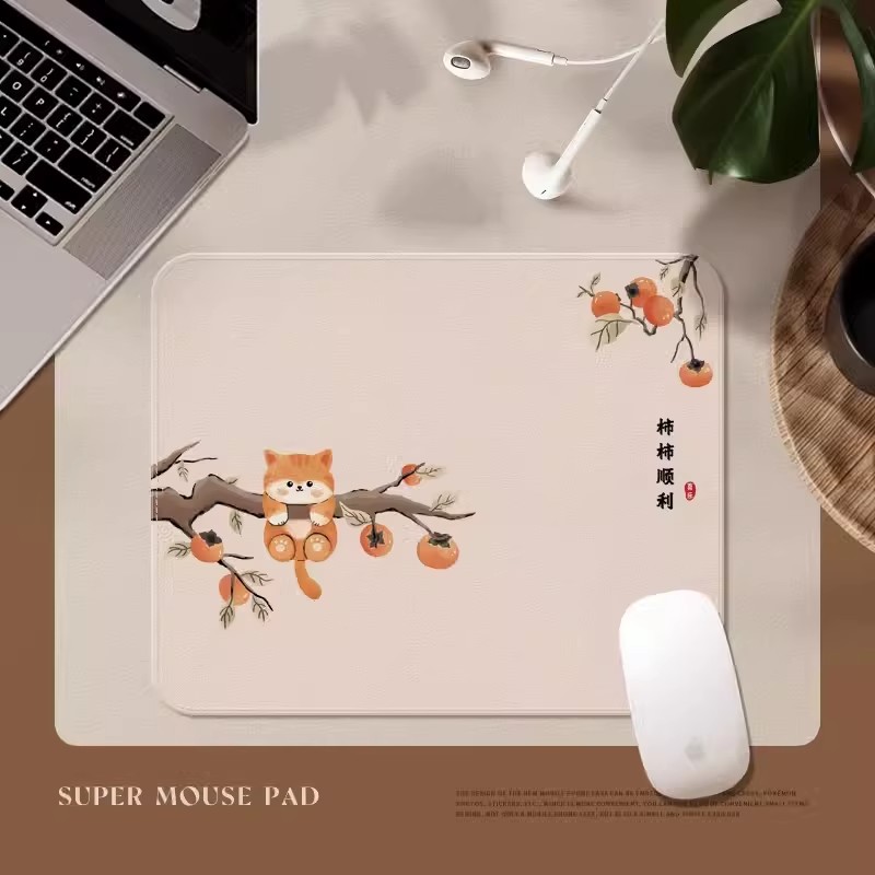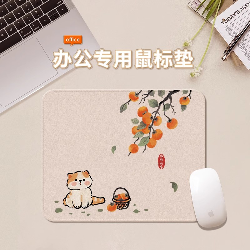 轻奢办公鼠标垫女生可爱猫咪与柿子鼠标垫子小号高颜值滑鼠垫
