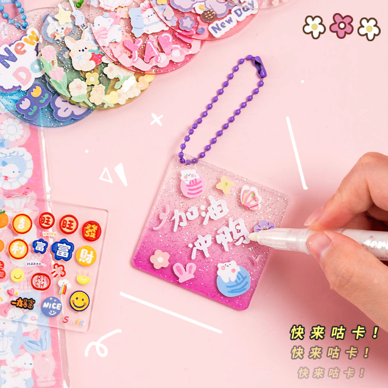 3D立体浮雕贴纸女孩儿童卡通动物宝石贴画钻石手机壳装饰水晶滴胶防水手帐高透明贴贴纸水杯手机后壳玩具家族
