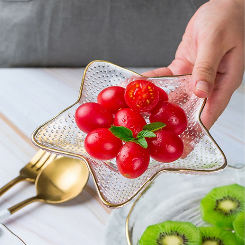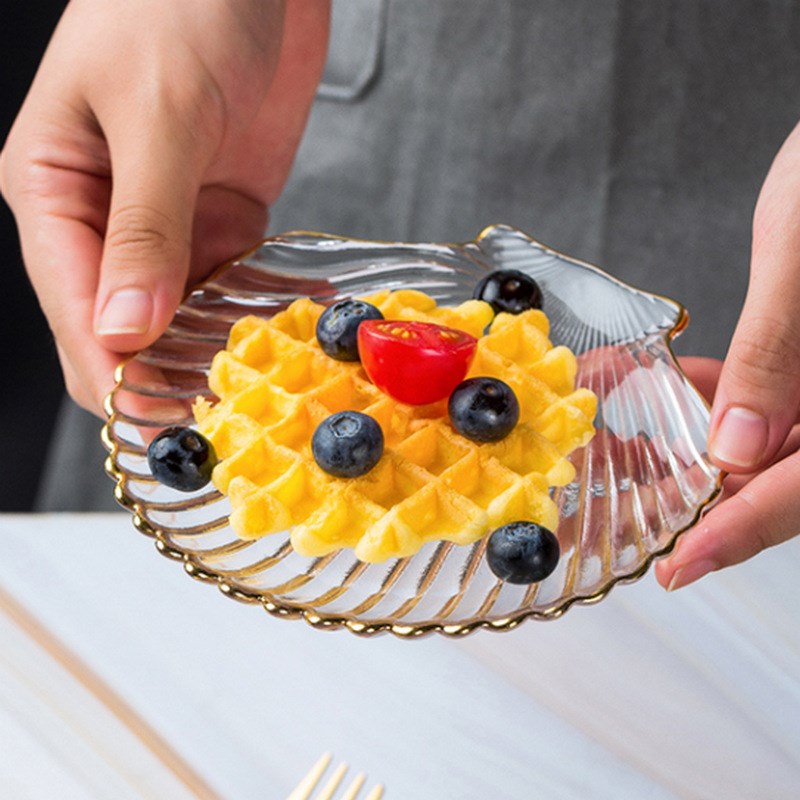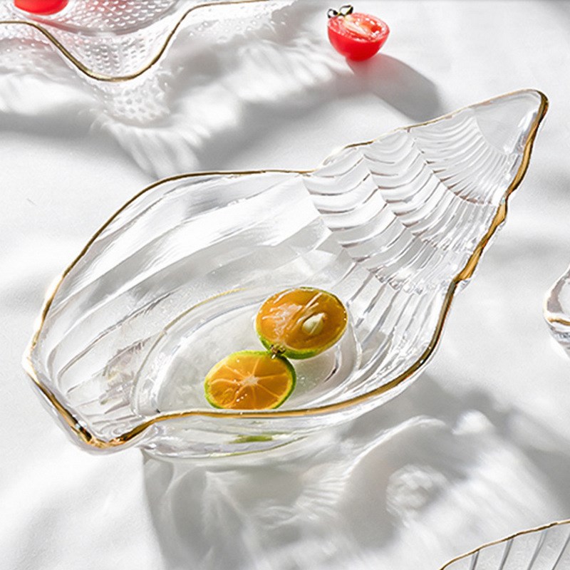 北欧ins金边玻璃餐具海洋风扇贝盘沙拉碗甜品盘装饰盘零食盘果盘