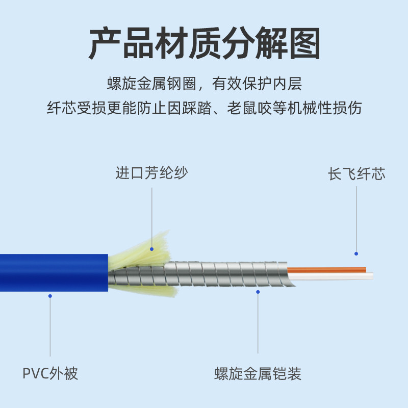 防鼠铠装光纤跳线SC转LC-FC-ST单模双芯4/6/8芯万兆多模光纤尾缆