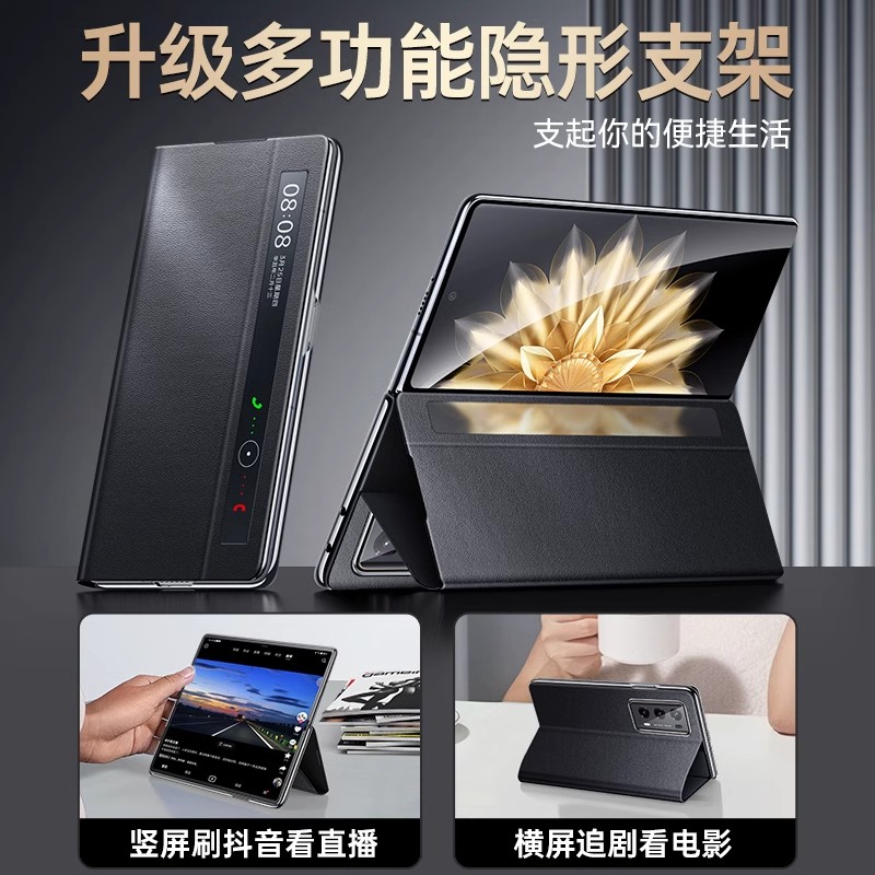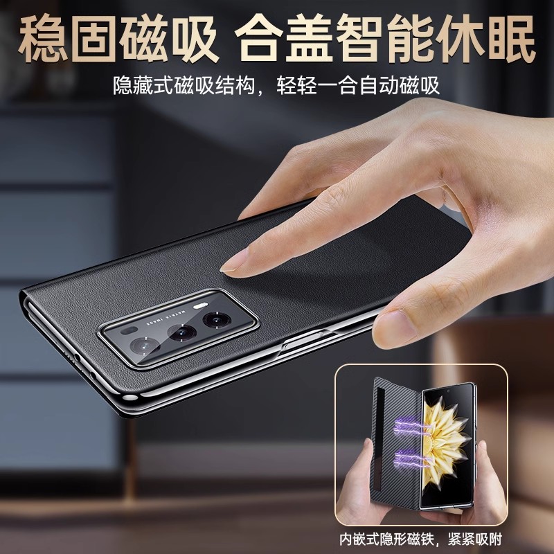适用荣耀Magicv3手机壳翻盖磁吸真皮vs2至臻版智能视窗Magicv2折叠屏超薄全包防摔vs3高级感保护套带支架皮质