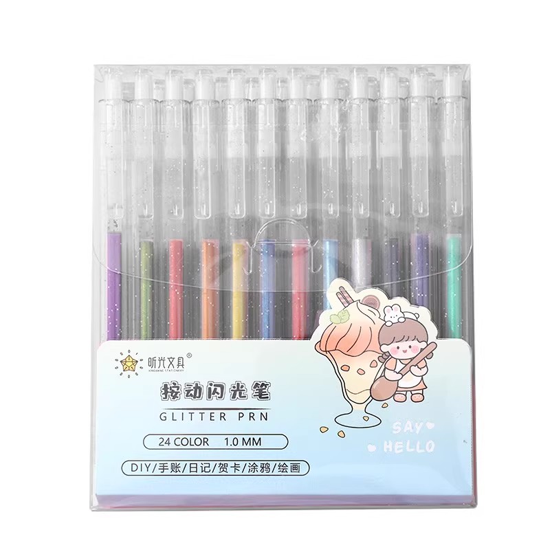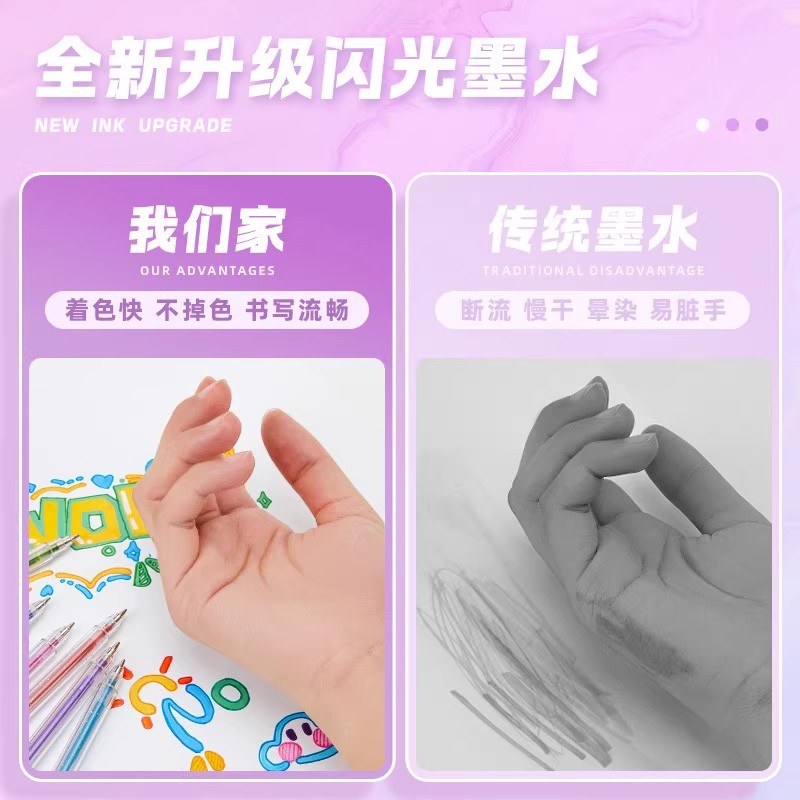 手帐笔彩色闪光笔啫喱发光亮晶晶流沙银光变色手帳专用珠光标记儿童笔记闪亮金属闪粉水彩笔荧光大容量做手账