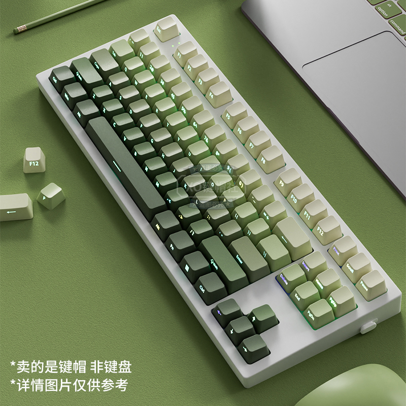 青提乌龙侧刻绿色键帽渐变透光原厂机械键盘帽68/87/98/108键迈从