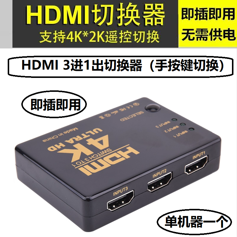 hdmi切换器3进1出HDMI高清切换器四进一出分配器4K 3D送遥控器