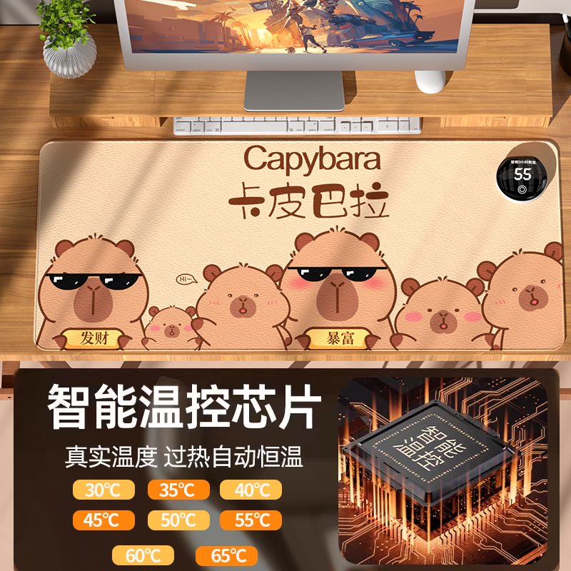 加热鼠标垫办公室桌面暖桌垫学生写作业暖手神器2024冬季新款加热桌垫卡通图案鼠标垫石墨烯发热可定时防水55
