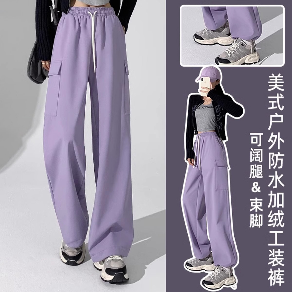 2025年春秋季新款工装裤女美式休闲宽松机能户外阔腿速干裤运动裤