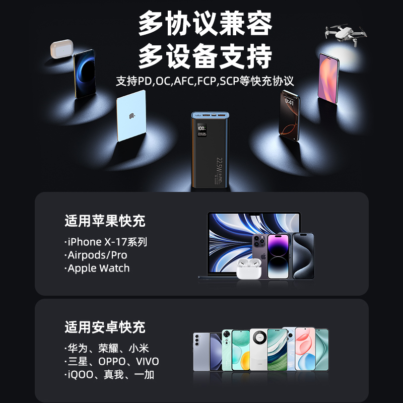 【新国标3C认证】超级快充超大容量充电宝2万毫安户外便携移动电源适用于苹果安卓通用可上飞机高铁2025新款c