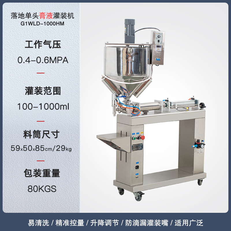 G1WLD-1000HM落地单头膏液灌装机加热搅拌果汁巧克力花生酱分装机