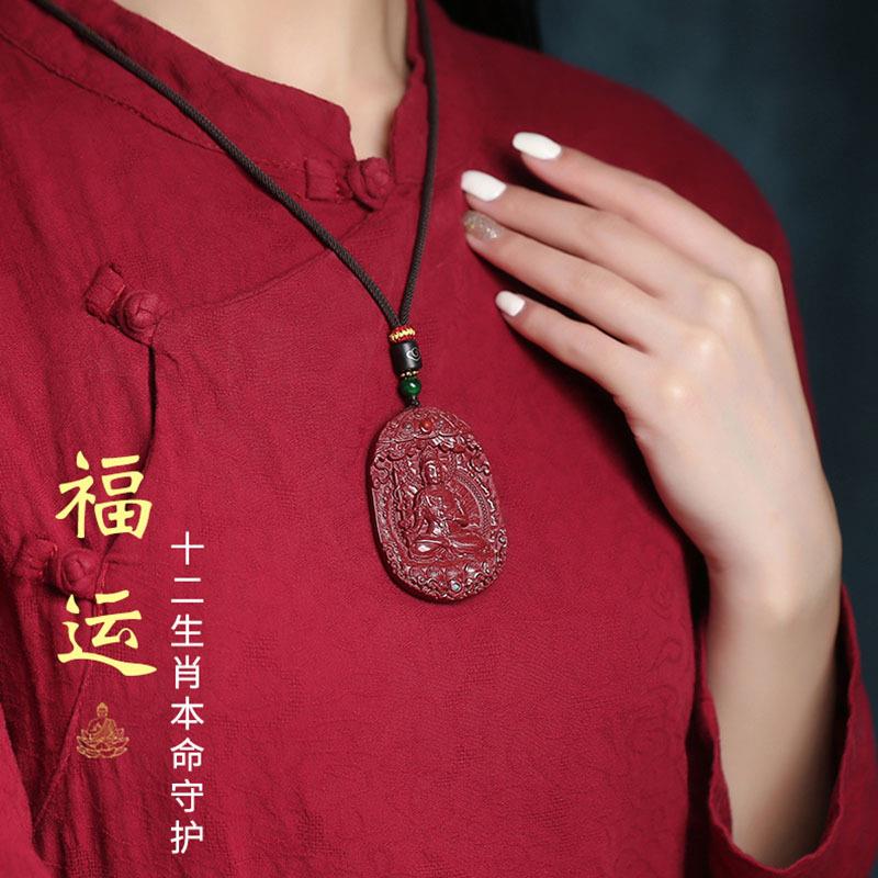 天然原矿朱砂本命佛紫金砂吊坠男项链生肖守护神符挂件女
