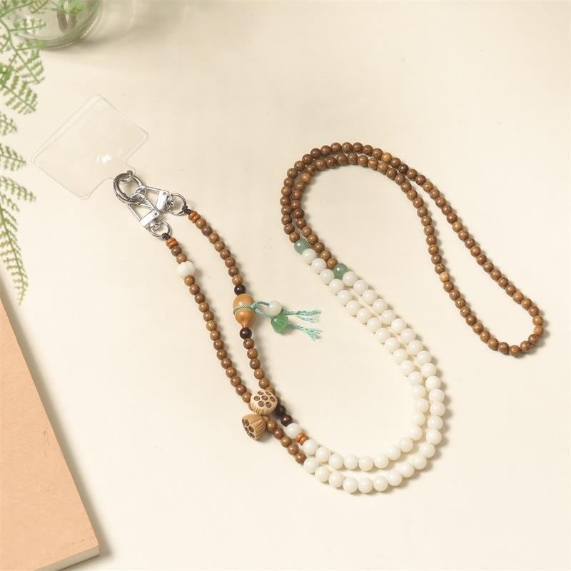 新中式原创金丝檀珠子白菩提手机挂绳福禄斜挎手机链吊绳女长款