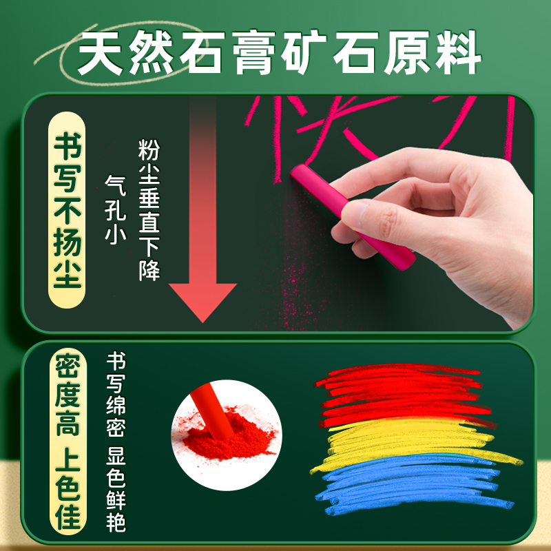 黑板报专用粉笔无尘无毒儿童不脏手彩色鲜艳粉笔教师专用黑板擦2026黑板家用红色黑色画黑板报粉笔王子可擦