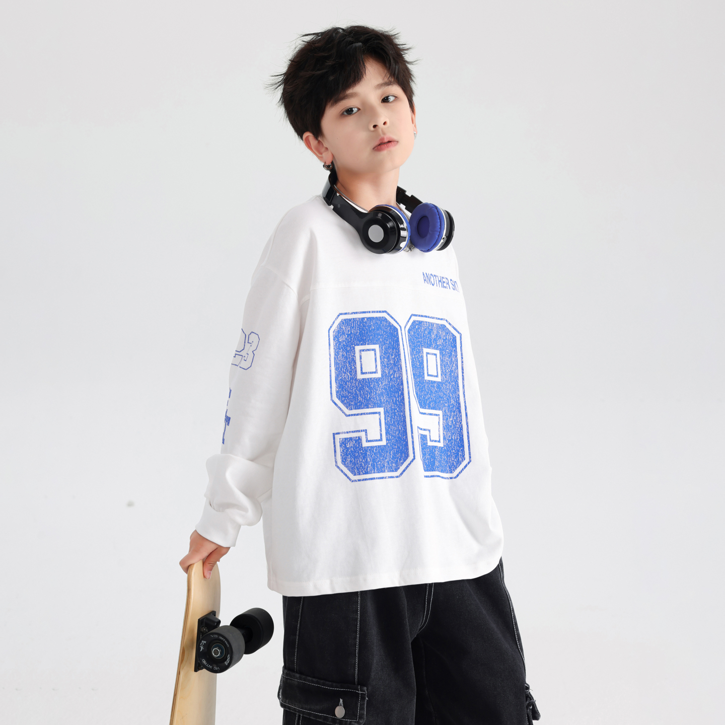 男童秋季美式户外运动长袖t恤2025新款青少年儿童纯棉宽松上衣潮
