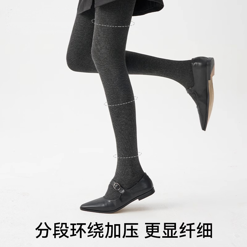 棉伙棉伴灰色连脚裤袜女秋冬外穿黑色踩脚显瘦格雷系提臀打底裤袜