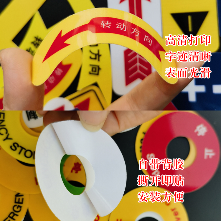 机械设备方向箭头标志贴指示贴机器运行方向标识贴顺逆时针旋转标示贴XYZ轴提示贴紧急停止安全警示贴定制
