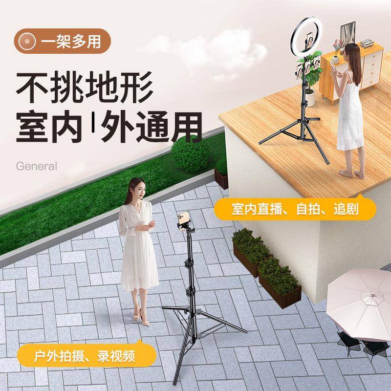 手机支架直播三脚架蓝牙遥控多功能落地式自拍杆拍照神器带补光灯