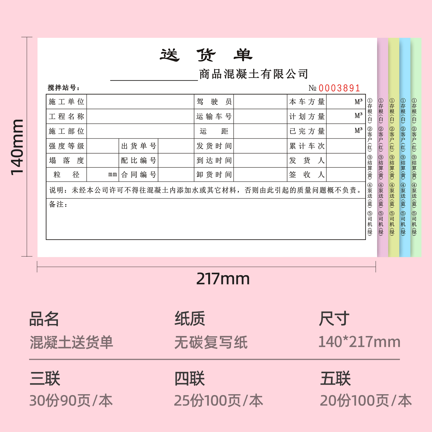 商品混凝土送货单三联四联五联搅拌站商砼工程用量方量销售结算单