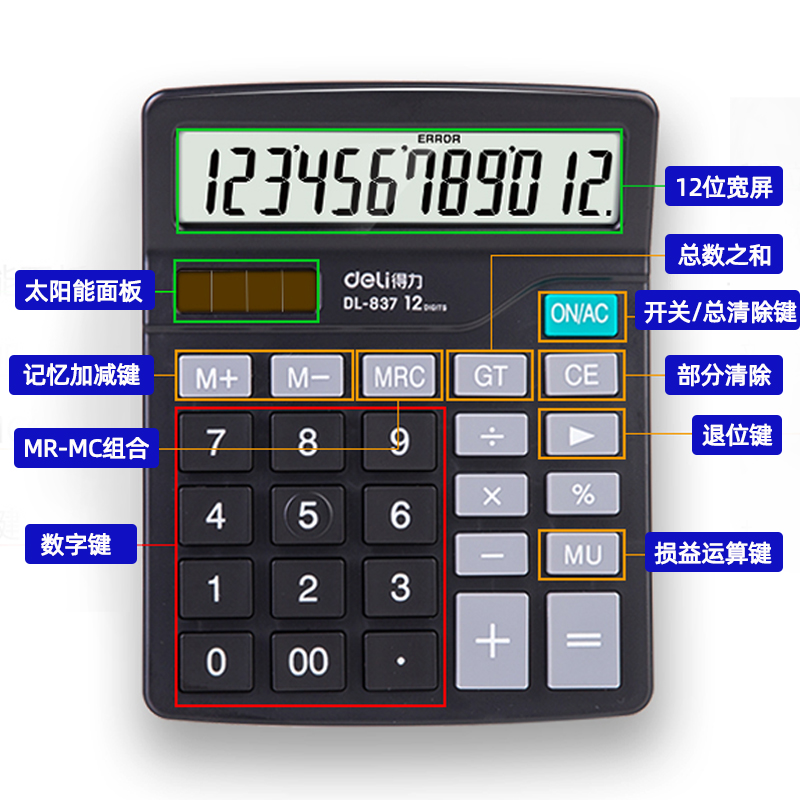 得力计算器办公用大按键会计专用太阳能学生用带语音大学财务小号计算机便携双电源计算机器按键办公用品大号