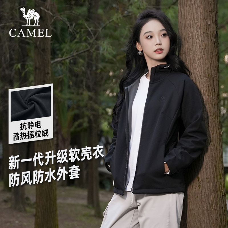 骆驼女装单层冲锋衣2025秋冬新款户外防风防水连帽立领男女款外套