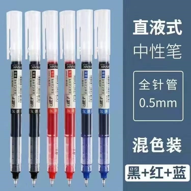 黑色直液式中性笔速干大容量走珠笔0.5学生用针管笔刷题办公用品