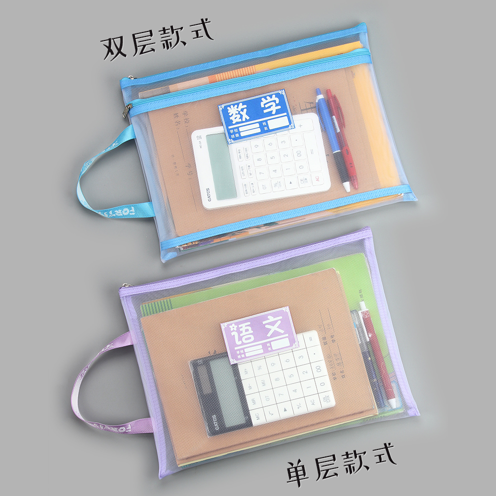 学科科目分类文件袋拉链式双层大容量小学生用资料书本课本分科书袋试卷收纳袋学生装卷子作业袋子A4透明网纱