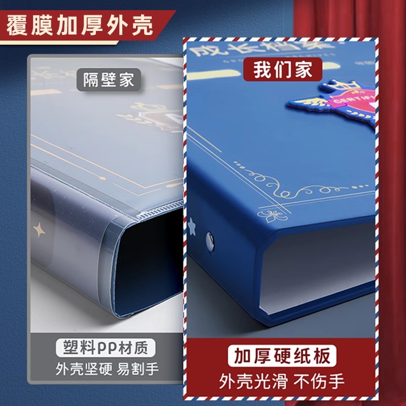 英伦成长档案记录册diy手册幼儿园宝宝透明相册纪念册小学生奖状收集册男女孩美术作品海报照片收纳册