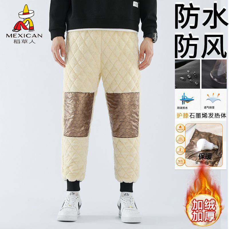 稻草人男士加绒加厚保暖休闲裤东北防风石墨烯护膝棉裤羊羔绒裤子
