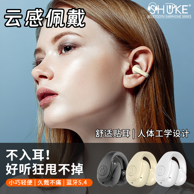 狂甩不掉蓝牙耳机耳夹式运动健身跑步超长待机续航不入耳手机通用