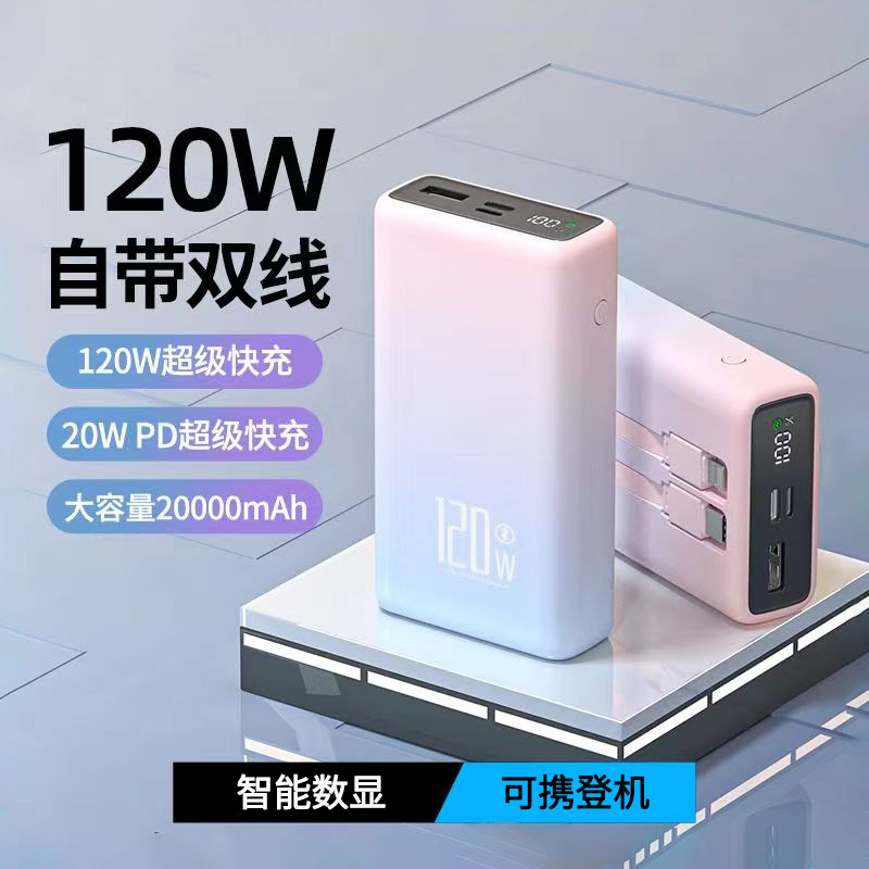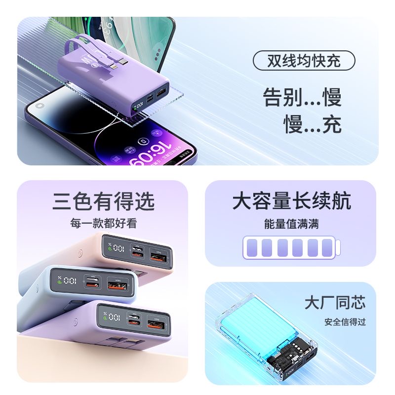 充电宝3C认证2025新款超级快充自带线20000毫安超大容量超薄小巧便携官方正品移动电源适用苹果专用可上飞机