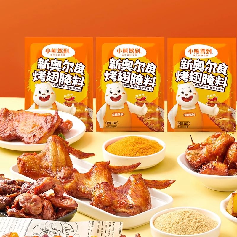 小熊驾到新奥尔良烤翅腌料35g家儿童微辣烤肉炸鸡翅烧烤调料腌制