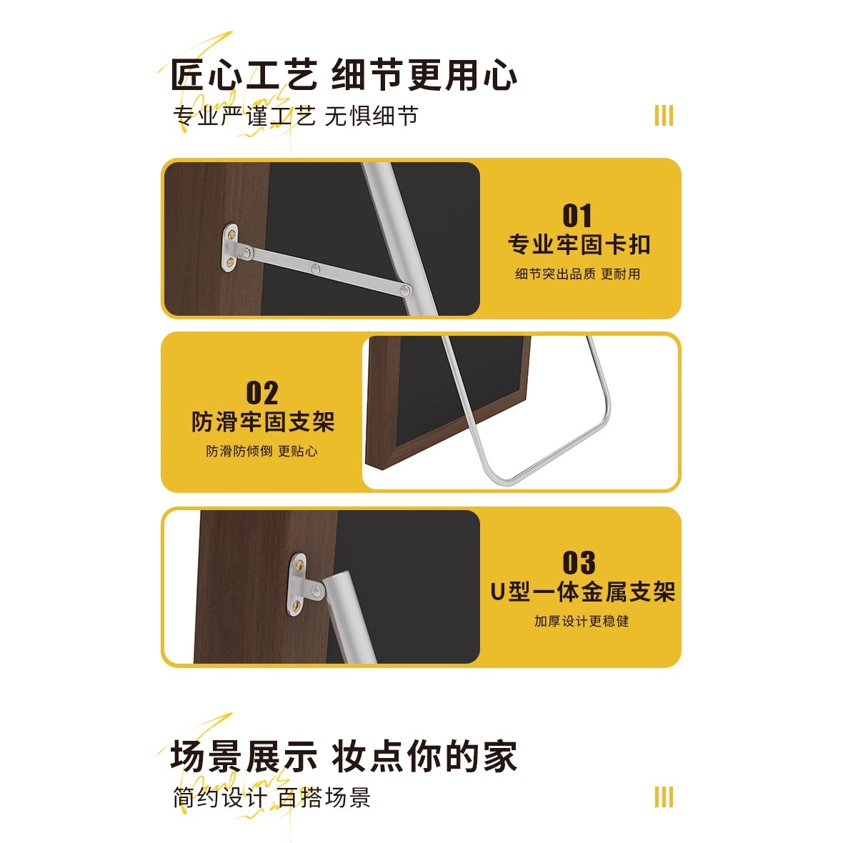 北欧风穿衣镜全身镜贴墙法式家用卧室落地镜服装店试衣镜复古镜子