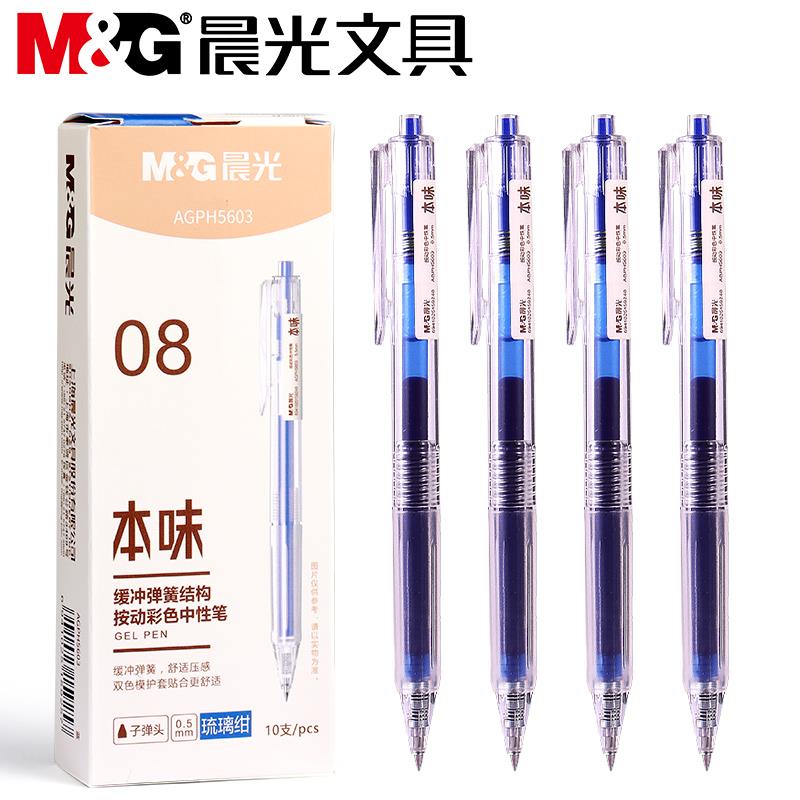 晨光本味系列彩色中性笔学生用0.5mm彩笔多色手帐笔文具水笔创意画画琉璃色手账笔按动式蓝色做记笔记专用