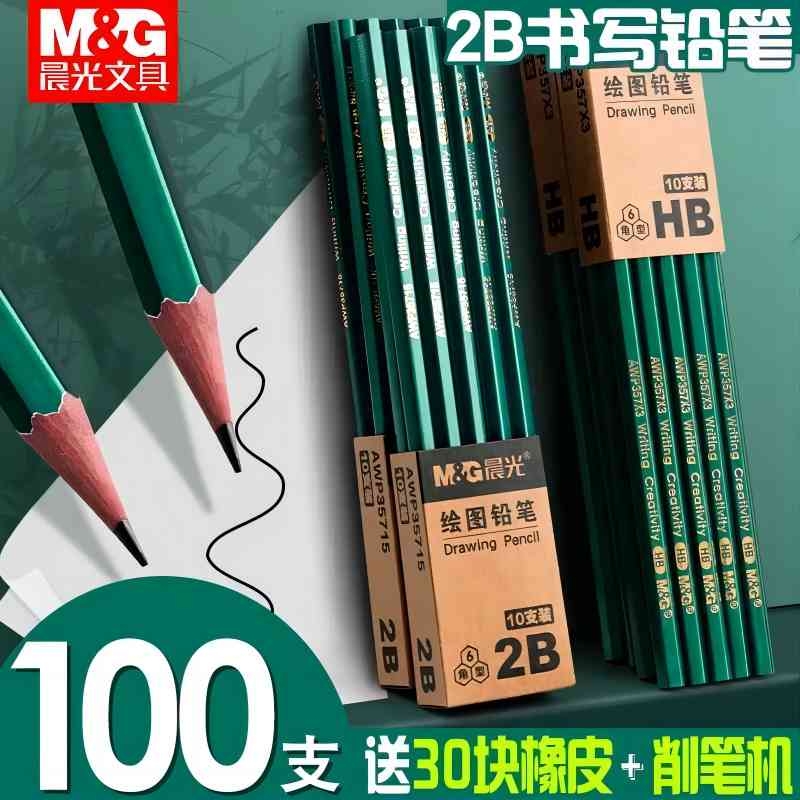 晨光2B铅笔小学生2比考试学生专用涂卡笔答题卡儿童一年级二年级用HB幼儿园用学习套装无毒HB铅笔素描写字