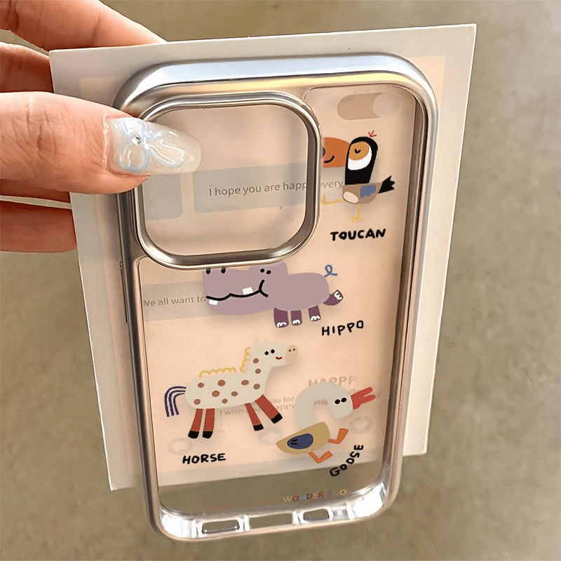 动物园双层手机壳 个性可爱扁平动物 河马大鹅ins风简约原创小众适用苹果15iPhone14ProMax13ProMax