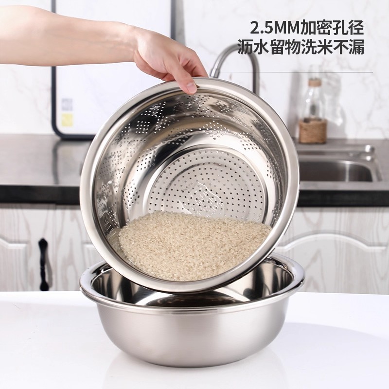 【家用厨房】不锈钢洗菜盆沥水盆密孔沥水篮食品接触加厚淘米盆子