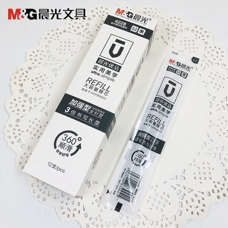 晨光优品4228黑色替芯 加强型全针管3倍大容量红色笔芯书写超顺滑