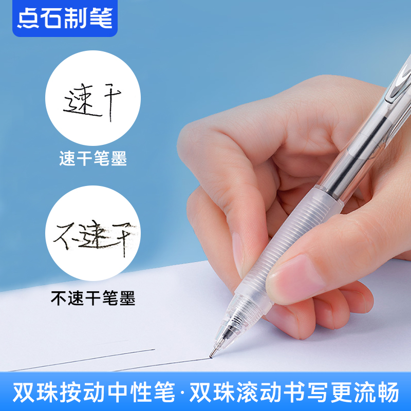 点石指间温柔按动中性笔DS-0110双珠针管头速干顺滑软握胶刷题笔