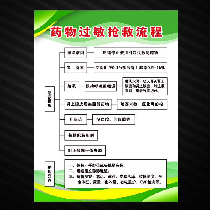 医院诊所门诊输液反应抢救流程图标牌标贴急救步骤管理制度可定制