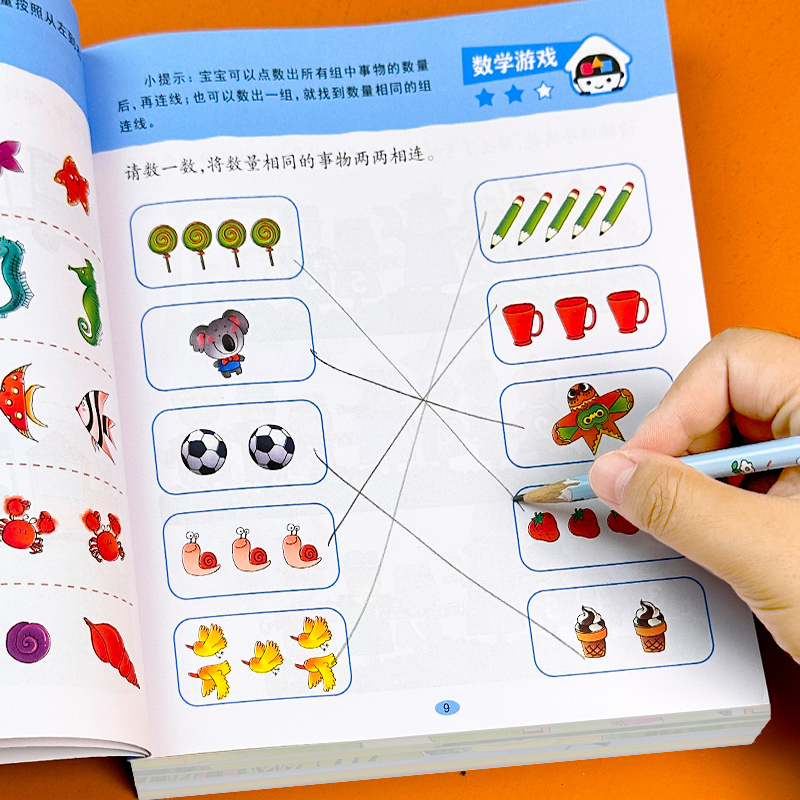 我上小中大班了幼儿园教材2-3-4-5-6岁幼儿智力开发数学思维训练题全脑开发找规律填空连线认数写字本作业本